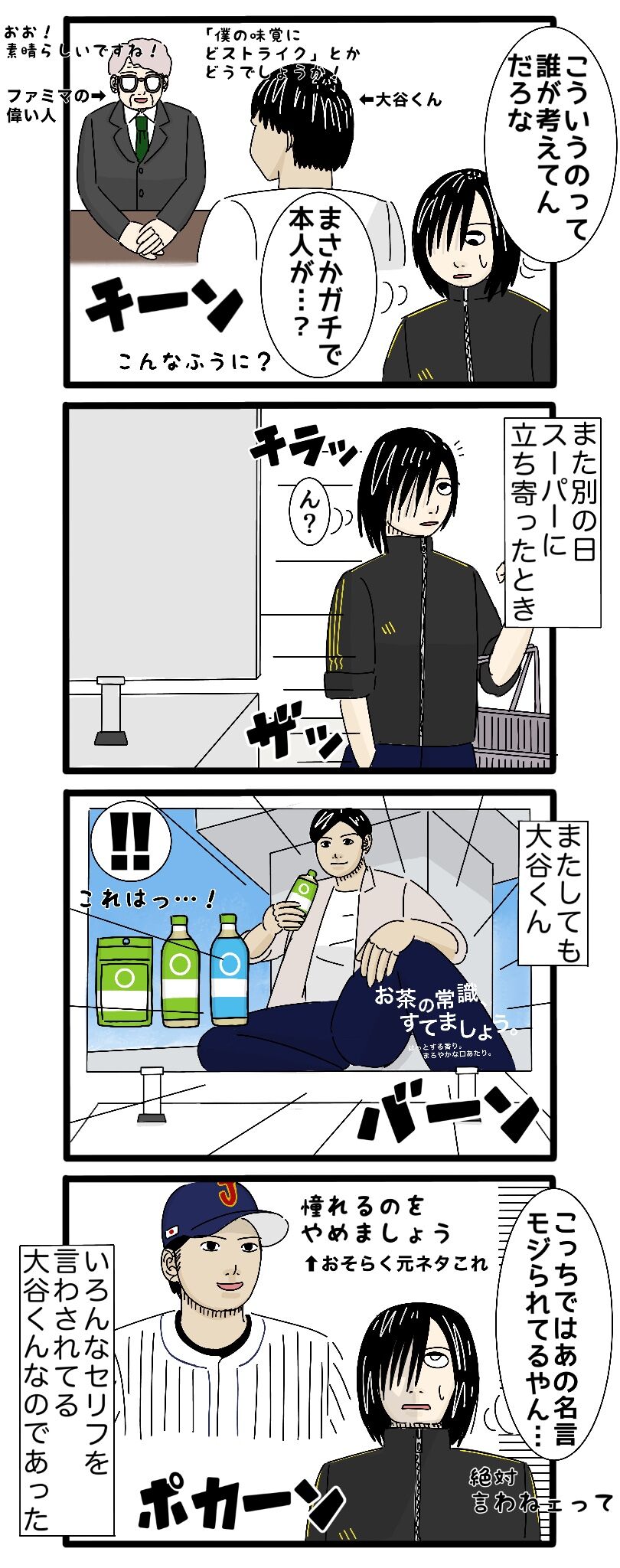 【広告】大谷くんが言わなそうなこと広告ですっごい言ってる 2025年07月08日 21:00 大谷くん真面目だから野球ギャグとか言わなそうだよなぁ言ったら絶対ウケるのになぁその分広告では言ってるのかなぁ一発ギャグ欲しい↓ キンドルでコロナ禍(2020〜2022)の無料まとめ本出しましたのでそちらもぜひ↓ 「街、人間観察」カテゴリの最新記事 タグ :#大谷翔平#ファミマ#野球#ギャグ#広告#コンビニ#お茶#名言 < 前の記事次の記事 > コメント コメントフォーム 名前 コメント 記事の評価 リセット リセット 顔 星 情報を記憶 コメントを投稿する